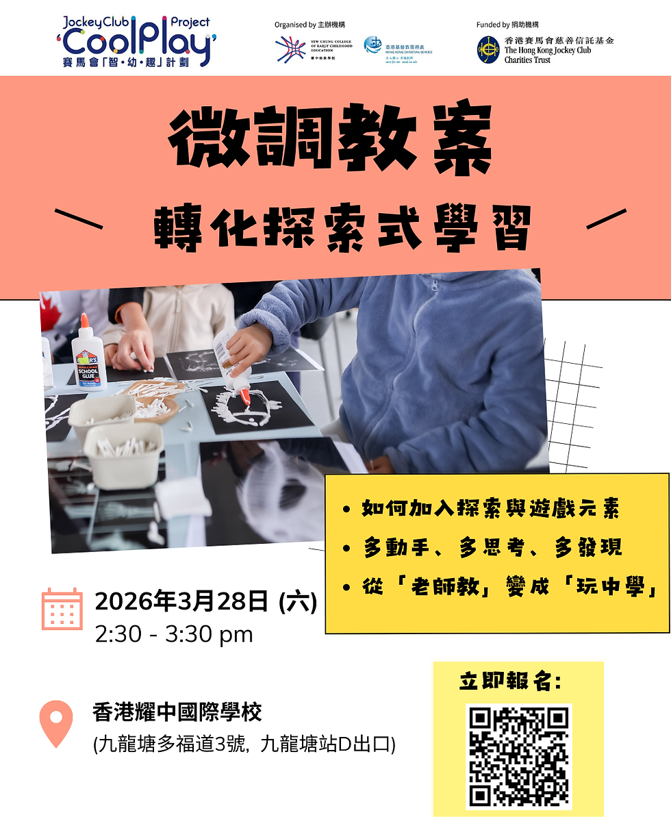 我們將分享如何在原有較為結構化的教案上作出小調整,加入探索與遊戲元素,讓孩子多動手、多思考、多發現,在過程中提升解難能力與學習動機。